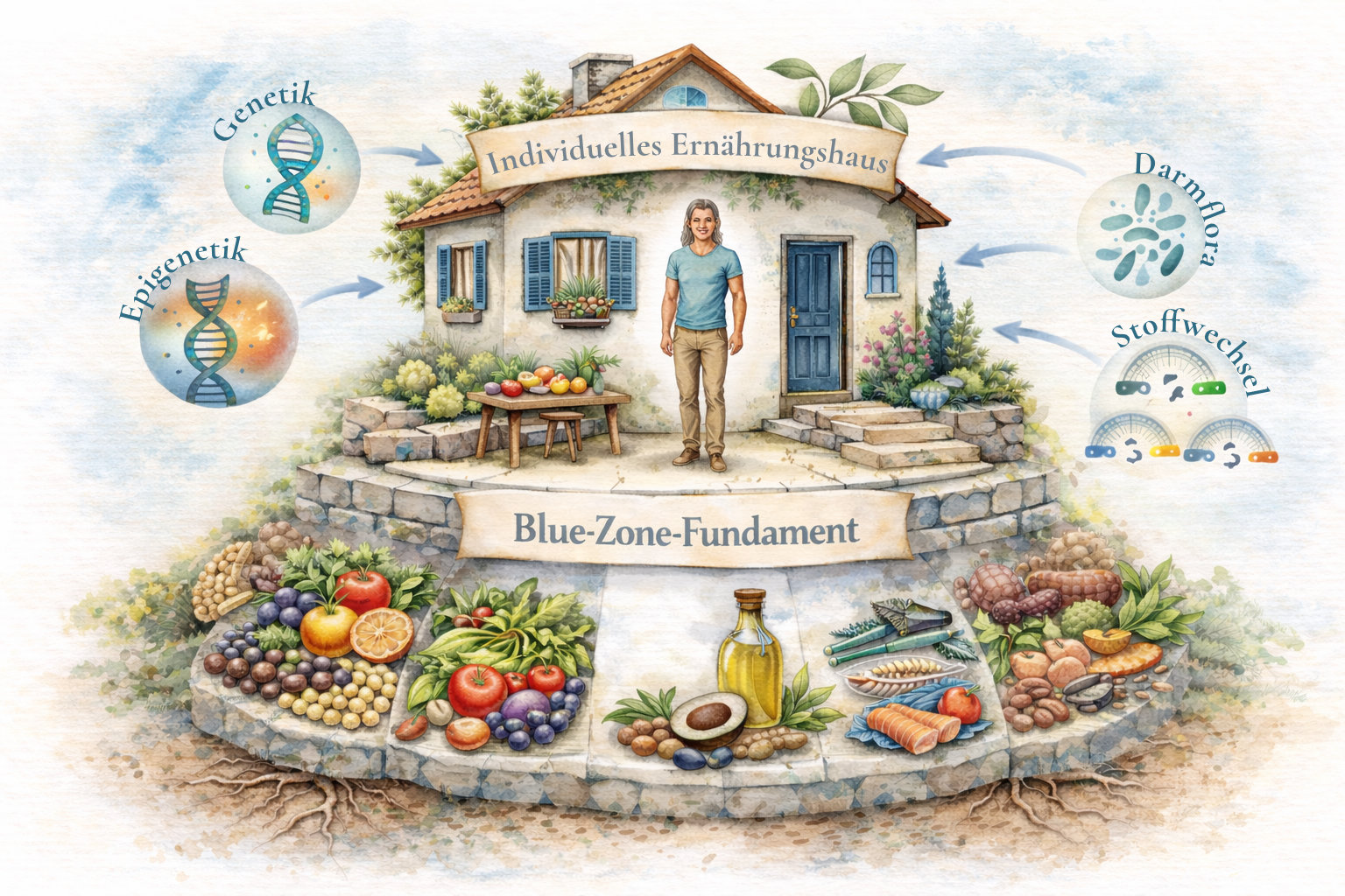 Deshalb gibt es keine Ernährungsform, die für alle Menschen optimal oder die beste ist. Auch die Blue-Zone-Ernährung sollte eher als gesundes Grundmuster gesehen werden. Es ist ein Fundament, auf dem jeder Mensch sein individuell an sich und seine Bedürfnisse angepasstes Ernährungshaus bauen kann.